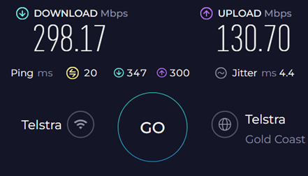 ![]() Speed Test running 4G LTE on Gold Coast ![]() Speed Test running 5G on Gold Coast |